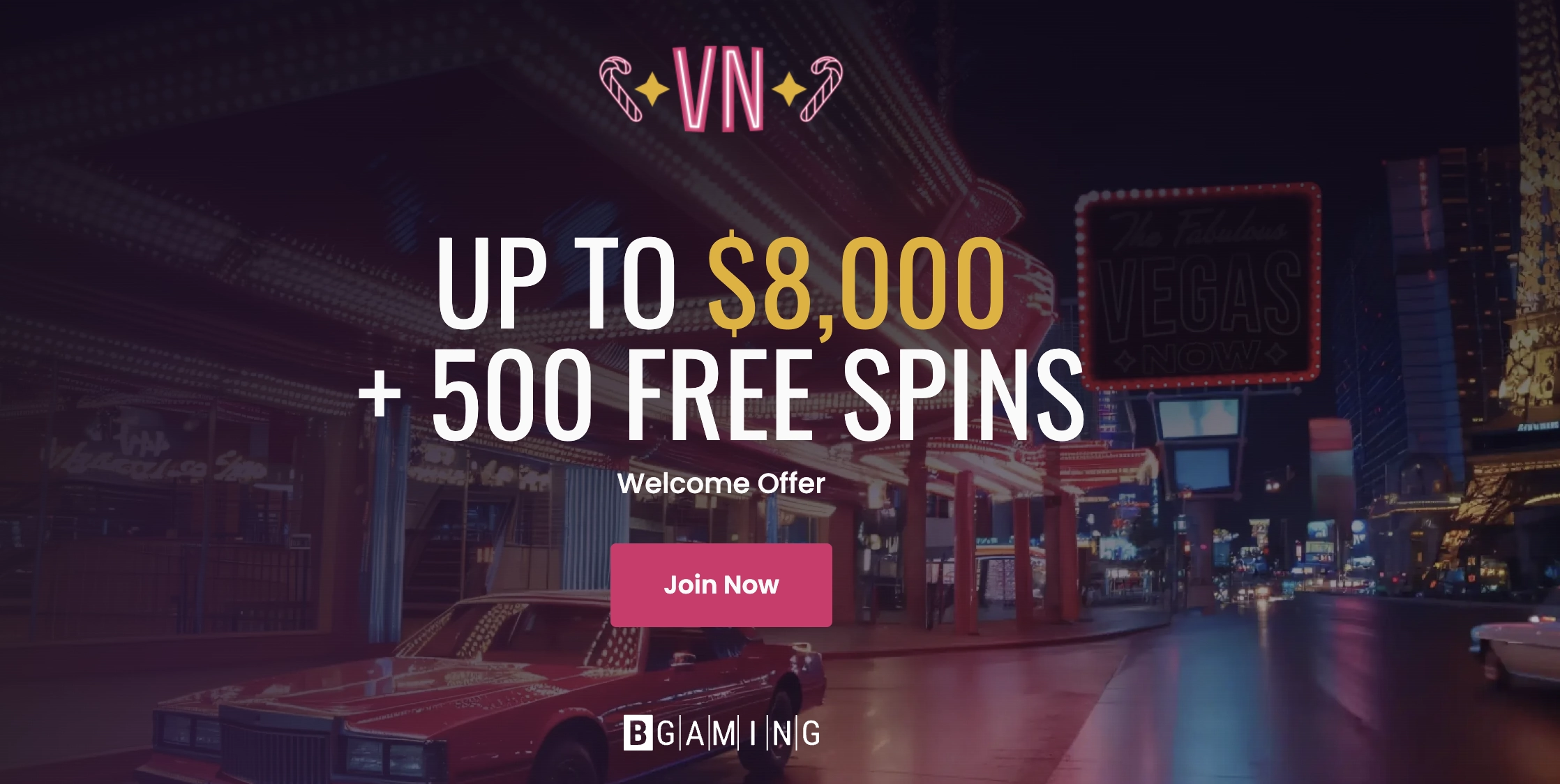Upon their first visit to Vegas Now casino after registration, players unlock a welcome bonus worth 8,000 Australian dollars and 500 free spins for Australian gambling enthusiasts. It includes:
